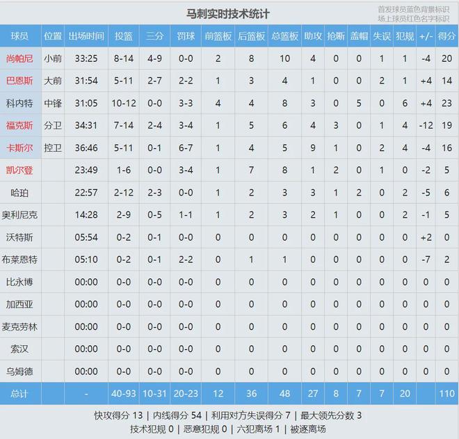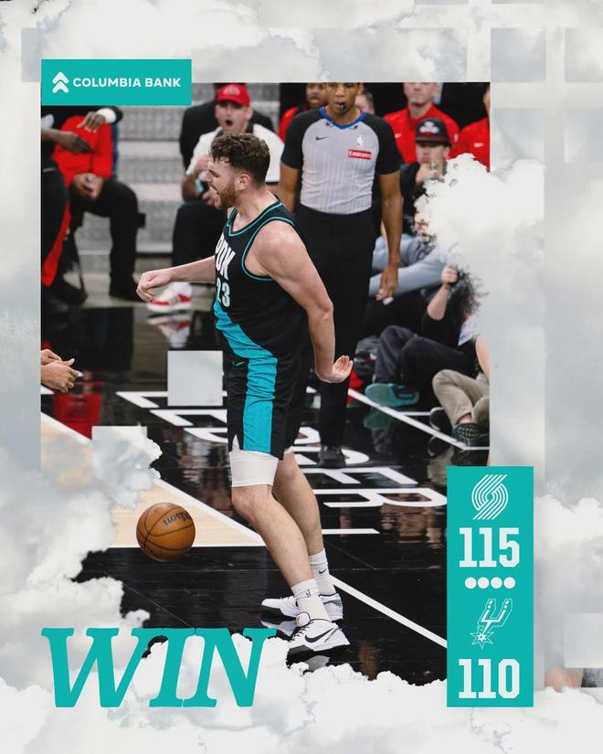 凯莱布-乐福4罚1中,福克斯中距离打铁,马刺大势已去。开拓者115-110战胜马刺,西部第10掀翻西部第2。阿夫迪亚29分11板10助、克林根24分12板4助、卡马拉20分8板;科内特23分8板5帽、尚帕尼20分10板4助、福克斯19分6板4助3断。