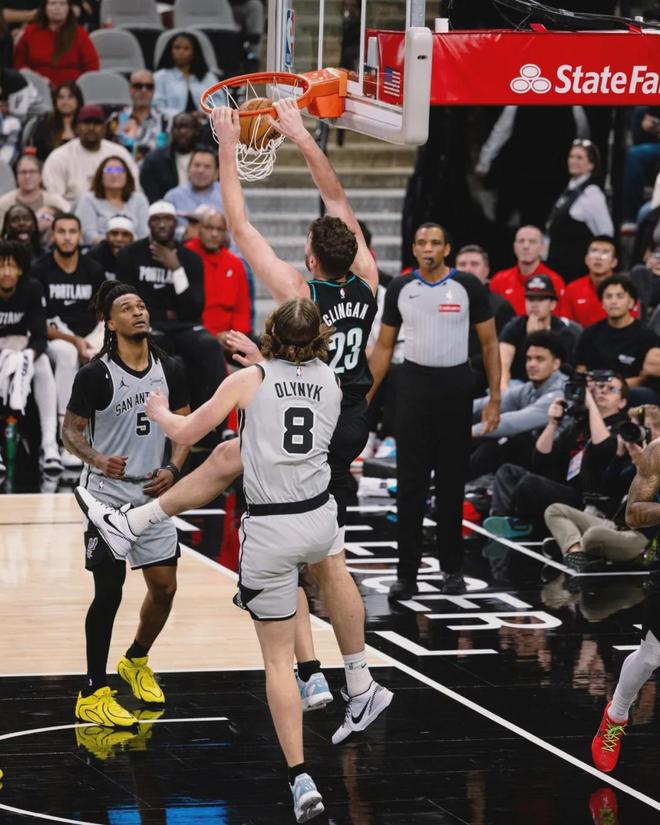 克林根在第三节吃到2次犯规,个人4犯被换下。第三节还剩5分钟,杨瀚森重新登场。杨瀚森在篮下又送出一记盖帽,进攻端接阿夫迪亚传球造杀伤,小杨2罚2中。现在这支开拓者没有靠谱的后卫,场上只有阿夫迪亚擅长给中锋传球。