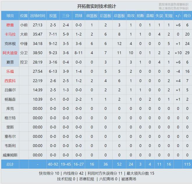 克林根单场24分,打破生涯纪录!杨瀚森出战10分39秒,贡献2分2板1助2帽,正负值+1。今天在场上没有犯错,只是球权太少了。最后看看数据,说说你的心情: