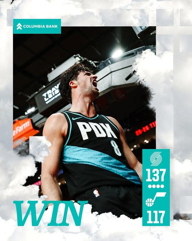 常规赛,开拓者主场137-117战胜爵士。